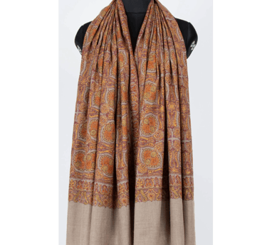 Sozni embroidery on real Pashmina is done by hand using fine silk or cotton threads.
