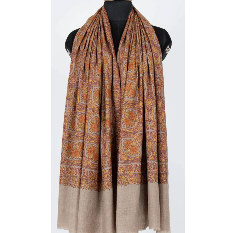 No machines: Authentic Pashmina is entirely handspun, handwoven, and hand-embroidered — a process that can take weeks to months for a single shawl.